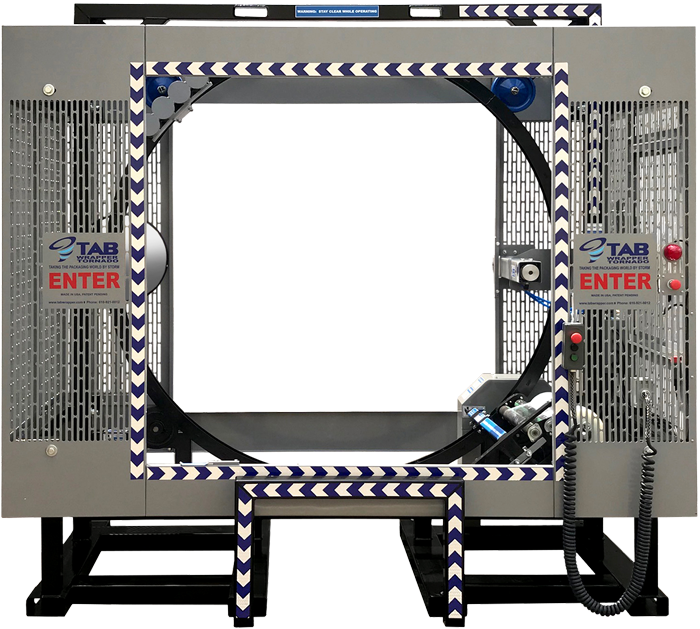The TAB Wrapper Tornado line of orbital wrapping machines is designed and manufactured by TAB Industries at its 44,000 square foot headquarters in Reading, Pennsylvania – made in USA. The patented orbital wrappers automatically wrap plastic film 360 degrees around and under the pallet and the load to create a tight, secure, stable, unitized pallet load that eliminates shifting in transit and storage. No banding, strapping, crates, or containers are needed.