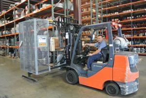 The new kind of machine Hunter saw in action is called the TAB WRAPPER TORNADO. Designed and manufactured by the metal fabrication, warehousing and logistics company TAB Industries, LLC at its Reading, Pennsylvania headquarters, the orbital wrapping machine automatically wraps plastic stretch film 360 degrees around and under an entire pallet load to create a single, unitized, secure load. Completely encasing the packaged products in multiple layers of plastic, the packaging machine protects the cartons from exposure to the elements, ensures they stay in place and intact during warehousing and transportation and instills confidence that everything will arrive safely at its destination without risk of damage or contamination. “Andy [Brizek] let us test one for a week in our plant so we setup an experiment with one of our most difficult products,” says Hunter, referring to a very large, stainless fitting that had required both wrapping in plastic and metal banding to ship. To simulate typical shipping conditions, the test involved loading 400 lbs. of the fittings on a pallet, raising it on the forklift, wrapping it in the TAB WRAPPER TORNADO, then rotating it completely upside down – and bouncing it up and down. “No matter what we tried, the load stayed intact – the TAB WRAPPER amazed us,” says Hunter. “We knew that if it could handle these fittings then it could handle anything we need to pack and ship and we were sold.”